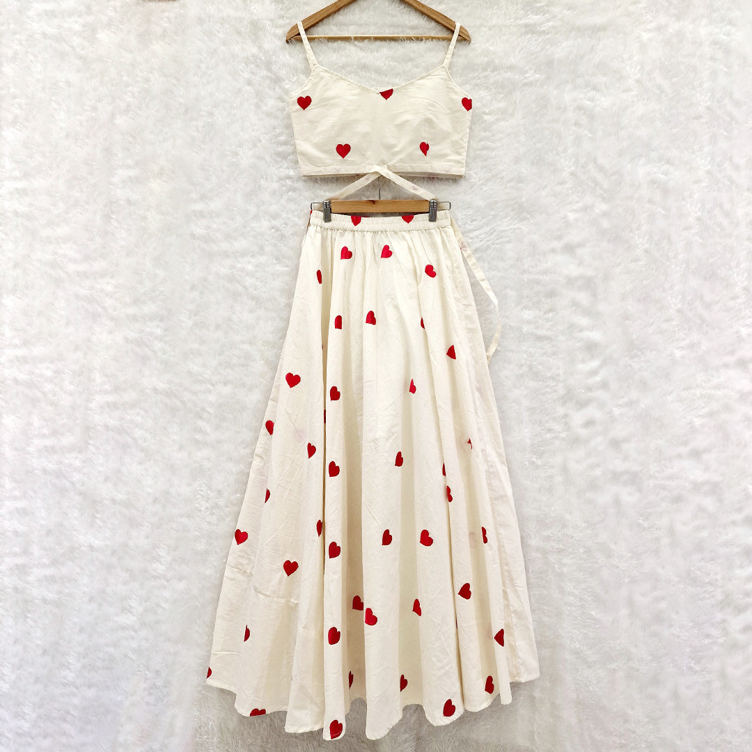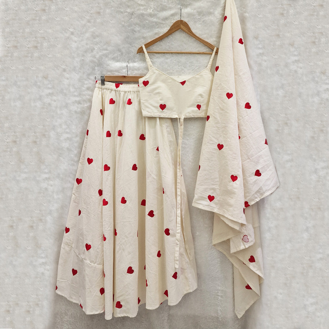 Get ready to win hearts with our Heart Embroidered Lahenga Choli! Perfect for small or casual functions, this ready-to-wear outfit will make you stand out in the crowd. With intricate embroidery and a playful design, you'll be the talk of the party. (Order now before it's too late!)